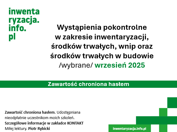 Zabezpieczone: Wystąpienia pokontrolne w zakresie inwentaryzacji, środków trwałych, wnip oraz środków trwałych w budowie – wrzesień 2025