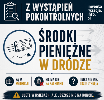 Naruszenie przepisów określonych w art. 26 ust. 1 pkt 3 ustawy z dnia 29 września 1994 r. o rachunkowości, poprzez nieprawidłowe przeprowadzenie inwentaryzacji drogą weryfikacji sald środków pieniężnych w drodze ewidencjonowanych w księgach budżetu Gminy na koncie 140 – „Środki pieniężne w drodze” oraz w księgach Urzędu na koncie 141 – „Środki pieniężne w drodze” wg stanu na dzień 31.12.2023 r. W wyniku inwentaryzacji ww. kont ustalono, iż kwota 13.302,87 zł, była zaksięgowana równocześnie na obu ww. kontach, a mimo to nie dokonano korekty tego błędu (poprzez odpowiednie przeksięgowania). Skutkiem powyższego było wykazanie ww. kwoty zarówno w bilansie z wykonania budżetu Gminy oraz w bilansie Urzędu Miejskiego na dzień 31.12.2023 r. Faktycznie ww. kwota powinna była być ujęta wyłącznie w księgach budżetu Gminy (konto 140) na przełomie okresów sprawozdawczych. Prawidłowo przeprowadzona inwentaryzacja według stanu na dzień 31.12.2023 r. powinna była doprowadzić do ujawnienia podwójnego zaksięgowania kwoty 13.302,87 zł i skutkować rozliczeniem ujawnionych w toku inwentaryzacji różnic w księgach rachunkowych tego roku obrotowego, na który przypadał termin inwentaryzacji, stosownie do przepisu art. 27 ust. 2 ww. ustawy.